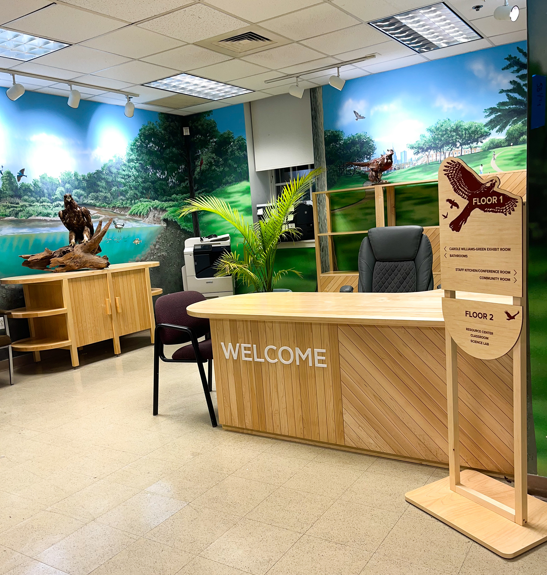 Co-designed a welcome desk, credenza, shelving unit, and tank stand for the Cobbs Creek Environmental Center with Barry Smith and Alex Gillam.